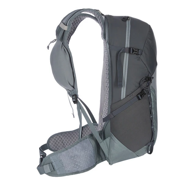 Gefertigt ist das Tragesystem aus einem sehr leichten Rückenpanel. Dieses ist mit Mesh bespannt und verfügt über eine spezielle Struktur, sodass wohltuende Luft zwischen Panel und deinen Rücken gelangen kann. So genießt du angenehme Belüftung. Durch den leichten Delrin-Rahmen wird für zusätzliche Stabilität gesorgt. Trotz des Verzichts auf dicke Polster bietet dir der Speed Lite hohen Tragekomfort bei geringem Gewicht. Viel Komfort versprechen dabei die mit Mesh-bezogenen, ergonomischen und perforierten Schultergurte. Abgerundet wird das Tragesystem mit den schlanken, atmungsaktiven Hüftflossen für guten Lastenausgleich. Der Speed Lite sitzt auch bei intensiven Etappen kompakt am Körper und bietet dir volle Bewegungsfreiheit!
