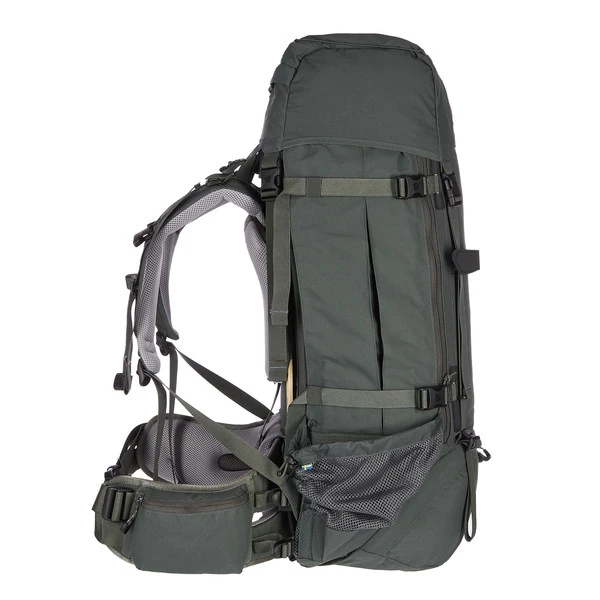 1960 wechselte Fjällräven vom Holz- zum Aluminiumgestell und markierte damit einen Wendepunkt in der Trekkingrucksack-Konstruktion. Heute geht Fjällräven den umgekehrten Weg: weg vom Alu, hin zum Holz! Die laminierten Holzleisten sind dabei mindestens genauso stabil wie das zuvor beim Kajka verwendete Aluminium. Im Direktvergleich zur Aluminiumstrebe reduziert die Strebe aus finnischer Birke die CO2-Belastung um mehr als 90 Prozent. Der Gesamt-CO2-Fußabdruck des Kajka reduziert sich damit um 10 Prozent. Und das, ohne in der Funktion oder Belastbarkeit Kompromisse einzugehen. Und ohne zusätzliches Gewicht!
