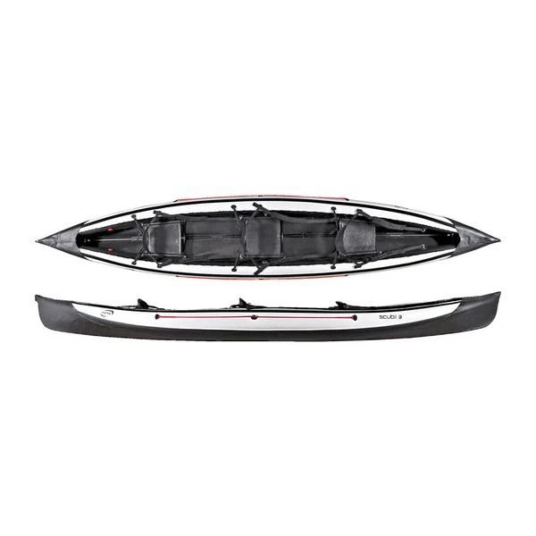 Das Scubi 3 ist das optimale Freizeitkajak für zwei Erwachsene und ein Kind oder zwei Paddler mit mehr Gepäck. Sein Haupteinsatzgebiet sind ruhigere Fließgewässer und Seen.