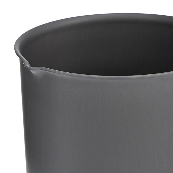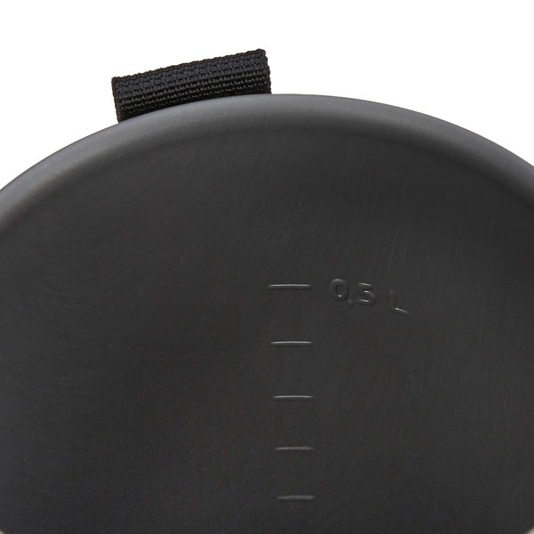 Der leichte Topf besteht aus hartanodisiertem Aluminium und besitzt einen Wärmetauscher am Boden, der die Hitze effektiv nutzt und so Brennstoff spart. Auf der Innenseite des Topfs befindet sich eine Skala, mit der du exakt die Menge Wasser erhitzen kannst, die du für dein Essen oder Trinken benötigst.