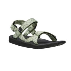 Die Riemen aus Polypropylen liegen weich auf der Haut, sind robust und schnelltrocknend. Alle drei sind per Klett schnell einstellbar. Die beiden sich kreuzenden Riemen sind übrigens nicht vernäht und bieten viel Flexibilität; das unterstützt die natürliche Abroll-Bewegung des Fußes. Die Sohlenkonstruktion aus EVA und Gummi gewärht eine gute Dämpfung. Geliefert wird die Sandale in einem passenden Schuhbeutel.