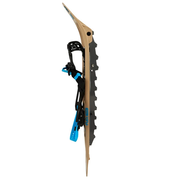 „Flex“ steht für den hinteren flexiblen Teil des Schneeschuhs. Dieser ermöglicht dir eine ergonomischere Abrollbewegung des Fußes und dämpft Stöße ab, wenn sich beispielsweise mal ein Stein unter dem Schnee verbirgt.